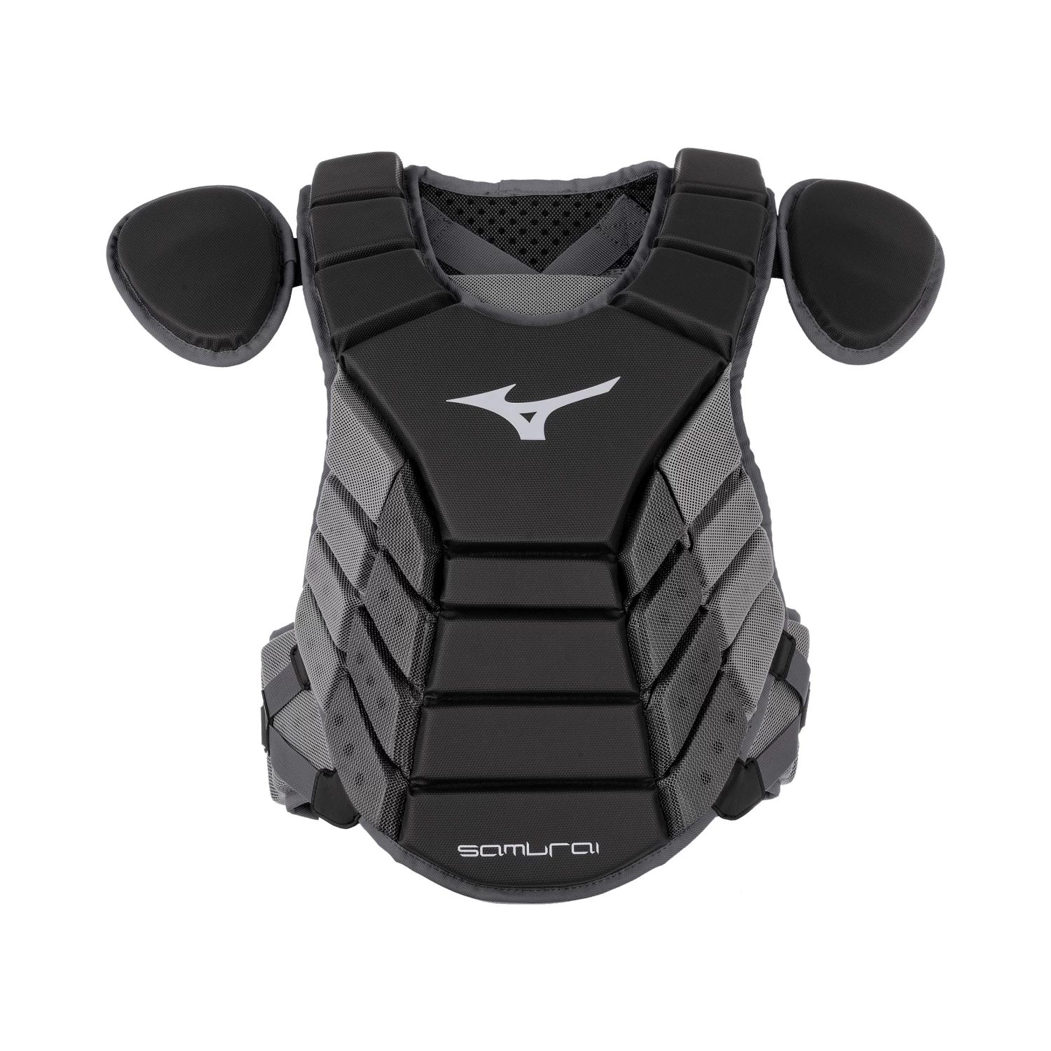 The Mizuno Samurai Youth 14 inch Chest Protector is built with the young player in mind. While pain is certainly part of the job description when it comes to catching, the ability to protect vulnerable areas of the body is key to staying healthy for the whole season. The new simple silhouette design and AirMesh back provide a streamlined and extremely effective protective shell that is lightweight and engineered to move in one-piece with a players body. Detachable wings and a Dual Adjustment System leave room for a customized fit and feel while Pre Curved Shoulder Pads allow catchers to make snap throws down to first or gun out would- be base stealers with as little restriction as possible.